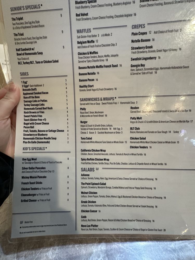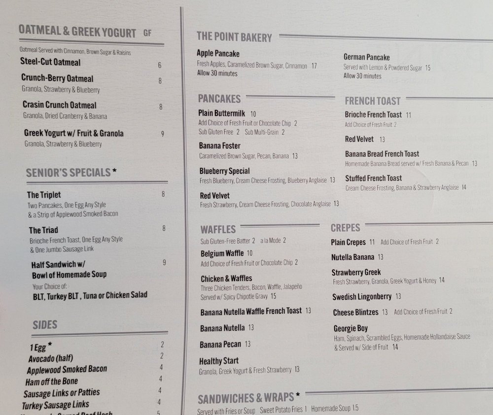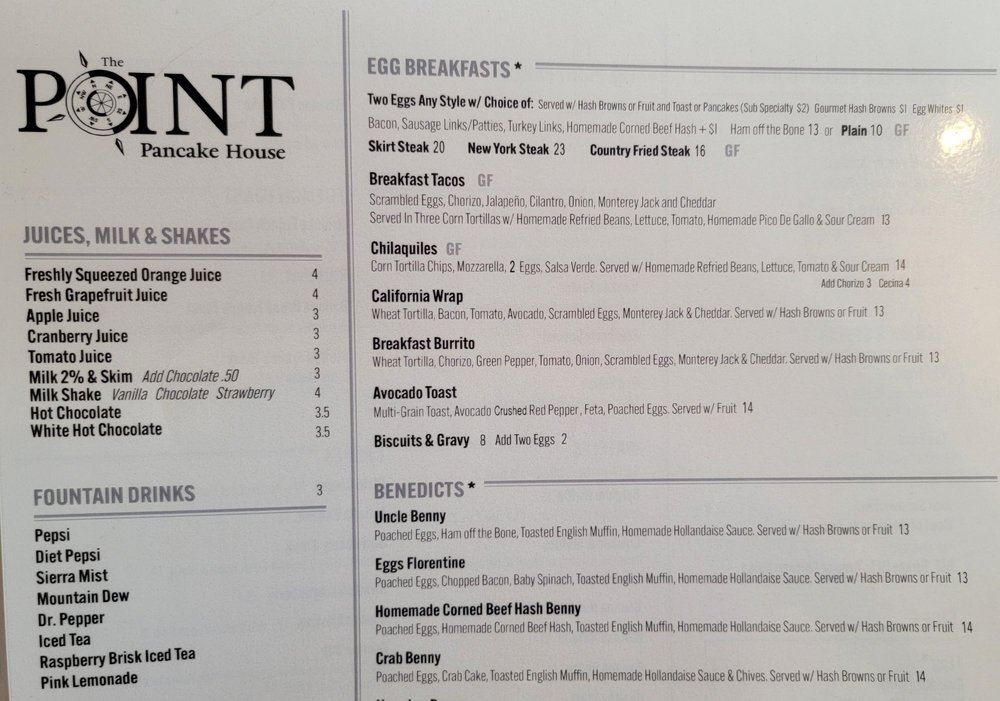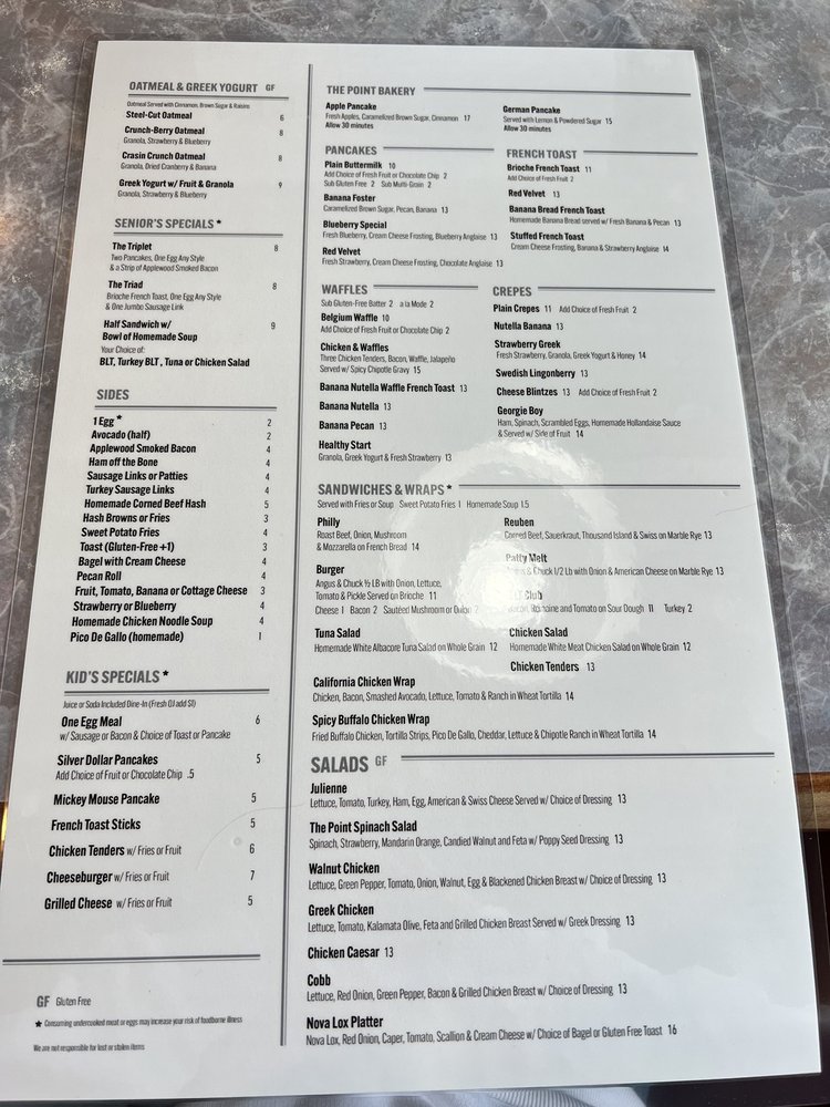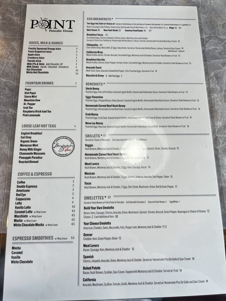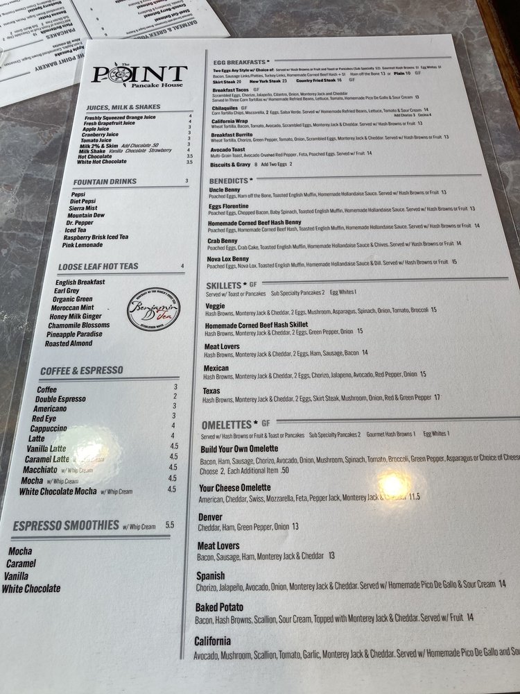 The Point Pancake House in Gurnee, IL offers a cozy and inviting breakfast experience with a variety of waffles and other options. The restaurant is wheelchair accessible, offers vegan and vegetarian choices, and provides outdoor seating. Customers praise the generous portions, delicious food, and excellent service. Specialty pancakes are a popular choice, with the option to upgrade for an extra fee. Fresh-squeezed orange juice and a selection of espresso beverages are available. Prices are reasonable, though some items may seem a bit pricey. Overall, The Point Pancake House is a delightful spot for a satisfying breakfast or brunch. With positive reviews praising the pancakes, omelets, and other dishes, visitors can expect a flavorful and fulfilling dining experience.